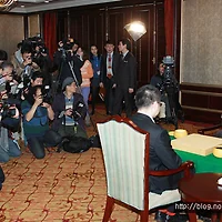 "제14회 농심 辛라면배 세계바둑 최강전 3라운드" 제11국이 지난 2월 26일, 중국 상하이그랜드센트럴 호텔 4층 특별대국실에서 개막했습니다.