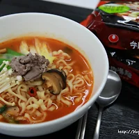 농심 사골 떡국면 1봉지, 소고기 안심 40g, 달걀 2개, 밀가루 30g, 대파 10g, 물 500mL 홍고추 2g, 소금 2g, 후춧가루 1g
