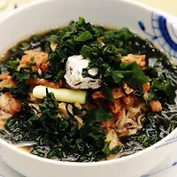 7. 끓는물에 면을 넣고 5분간 끓인후 물기를 빼고 그릇에 담는다.