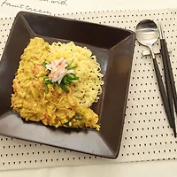 - 콩의 담백함과 신라면의 매콤함이 조화를 이루는 요리