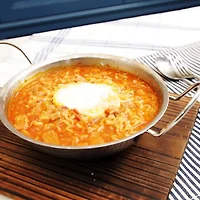 6. 명란젓을 넣어 1분이 지나면 김, 대파, ③의 달걀물을 풀어 1분간 끓인다.