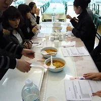 여러분에게도 농심 신입사원들의 연수현장을 살짝 공개합니다. 제가 찾은 이날은 모의 경영훈련이 진행되고 있었습니다. 각자 조를 나눠 제품을 생산하고 이를 판매하며 경영 전반에 대한 이해를 도모하고자 하는데요. 그 열기가 무척이나 뜨겁습니다.