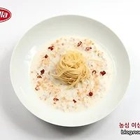 9. 바릴라 스파게티(물1L+소금7g)티는 끓는 물에 7분간 삶아 건져둔다.