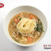 12. 그릇에 담고 위에 채썬 바질을 올린다.