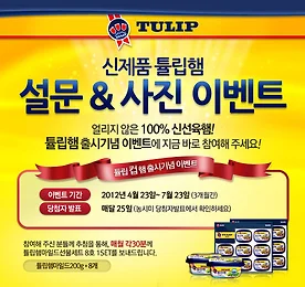 [이벤트] 신제품 튤립햄 '설문 & 사진 이벤트' 얼리지 않은 100% 신선육햄!신제품 튤립햄 출시기념 이벤트에 지금 바로 참여하세요! 신제품 튤립햄 '설문 & 사진 이벤트' 페이지 바로가기 ★ 이벤트 1지금 설문에 응모해주시면, 매달 30분께 추첨을 통해 튤림햄선물세트 1세트씩 드립니다. ★ 이벤트 2신제품 튤립햄과의 다양한 사진을 올려주세요.재미있고 기발한 사진을 올려주시면, 매달 30분께 추첨을 통해 튤립햄선물세트 1세트씩 드립니다. ▷ 이벤트 기간 : 2012년 4월 23일 ~ 7월 23일 (3개월간)▷ 당첨자 발표 : 매달 25일 (농시미 당첨자발표에서 확인하세요) (농시미 당첨자 발표 바로가기 클릭) 더보기 이전 1 ··· 1045 1046 1047 1048 1049 1050 1051 ··· 1849 다음