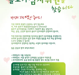 '농심 면요리왕 선발대회' 블로거 심사위원을 찾습니다 *블로거 심사위원모집 안내 말씀드립니다 면요리왕 선발대회 행사 고지가 늦어진 관계로 블로거 심사위원 모집일정을 조금 조정할까 합니다. 신청마감을 4월 17일(일) 저녁 6시까지로 변경합니다(기존 마감일은 4월 13일). 발표는 4월 19일로 순연되구요. 양해 바랍니다. 더보기 이전 1 ··· 1305 1306 1307 1308 1309 1310 1311 ··· 1849 다음