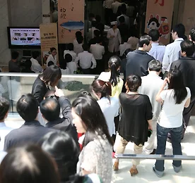 나른한 오후입니다. 연휴를 앞두고 있어 조금은 들뜬 기분이기도 합니다. 점심식사는 즐겁게 하셨나요? 오늘 농심 사내식당은 좀더 즐거웠던 것 같습니다. 이름하여 '일식 즉석 미니뷔페이벤트'가 있었기 때문이죠. 덕분에 12시부터 사내식당으로 이어지는 계단에는 임직원분들로 긴 줄이 만들어졌습니다. 이벤트 내용을 모르시는 분들은 평소 같지 않은 상황에 당황스러워 하시기도. 모듬초밥, 캘리포니아 롤, 유부초밥, 김밥, 김치볶음밥, 소갈비침, 오징어초 & 소면무침, 고구마 튀김, 만두 튀김, 양상추 샐러드, 락교 & 초생강, 포기김치.....(헥헥)...마무리는 식혜로 깔끔하고 든든하게 배를 채울 수 있었습니다. 메뉴도 메뉴였지만 일식당으로 완변하게 변신한 사내식당의 모습에 많은 임직원들이 즐거워했습니다. 불쑥불쑥..