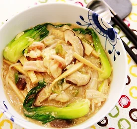 울면 안돼? '떡국면으로 울면' 돼! 울면 안돼~ 울면 안돼~ 유명한 크리스마스 캐롤이죠. 어디서 본 아재개그중에 중국집에선 '울면' 안 돼라는 표현이 있었는데... 하.하.하 중국집에서는 울면 안되지만 떡국면으로는 울면 됩니다! 떡국면을 활용해 중국집 울면을 재현한 레시피인데요~ 큼직한 해물과 담백한 굴소스, 고급 재료 죽순이 만나 떡국면이 울면으로 재탄생했습니다! 짭쪼름하면서도 입에 착 감기는 감칠맛이 일품인 '떡국면 울면' 레시피 보고 가시겠습니다! ■ 재 료 떡국면 1개, 물 600mL, 오징어 50g, 새우 50g, 청경채 40g, 청양고추 2개, 표고버섯 40g, 대파 40g, 죽순 30g, 다진 마늘 5g, 달걀 1개, 간장 10g, 굴소스 10g, 물전분 6g, 식용유 10g, 참기름 약간..