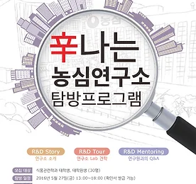 辛나는 농심연구소 탐방프로그램 지원모집! 辛나는 농심연구소 탐방프로그램 지원모집! 지금까지 이런 프로그램은 없었다! 농심 R&D연구소 탐방 프로그램에 함께 하세요! #. 모집 대상 식품관련학과 대학생, 대학원생 (30명) #. 탐방 일정 2016년 5월 27일(금) 13:00~18:00 (확인서 발급 가능) #. 선발 일정 - 참가신청서 접수: 2016년 5월 2일(월) ~ 5월 15일(일) - 대상자 발표: 2016년 5월 19일(목), 추첨 선발 후 메일 공지 및 개별 연락 ※ 일정은 내부 사정에 따라 변경될 수 있습니다. #. 지원 방법 - 농심 홈페이지, 농심 블로그에서 참가신청서 작성 및 등록 ※ 접수마감: 5월 15일(일) 18:00까지 #. 문의 안내 - E-mail: ns11@nongshim.com - Tel: 02) 820-82.. 더보기 이전 1 ··· 317 318 319 320 321 322 323 ··· 1849 다음