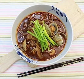 짬뽕, 짜장, 고민 말고 '짬짜왕'! 제가 자주 하는 고민 중에 하나는 '짬뽕을 먹을까 짜장을 먹을까?'하는 고민이에요. 오늘은 고민하다가 짬짜왕이라는 레시피를 개발하였습니다. 짬뽕과 짜장의 맛을 한 번에 느끼실 수 있습니다. 짬뽕의 향과 짜왕의 맛이 절묘하게 어우러진 특별한 맛에 반하실 거에요. 오늘의 팁은 고춧가루를 넣고 볶을 때 타지 않게 충분히 볶는 것입니다. 더 깊고 풍부한 맛을 느끼실 수 있습니다. 혹시 고춧가루가 타려고 한다면 청주나 물을 조금씩 넣어가면서 볶아보세요. ■ 재 료 짜왕 1개, 모시조개 60g(2개), 새우 30g(2개), 오징어 30g, 양파 30g, 대파 20g, 미나리 10g, 식용유 10g, 통마늘 10g, 고춧가루 6g, 물 500mL, 간장 4g ■ 레시피 01. 모..