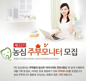 농심 제22기 주부모니터를 모집합니다 농심 '제22기 주부모니터'를 모집합니다. 주부9단의 노하우를 전해주세요~ 농심이 9월 15일까지 제22기 주부모니터를 모집합니다. 농심 주부모니터는 올해로 15년째 운영되고 있는 농심의 대표적인 소비자 아이디어그룹이랍니다. 주로 신제품을 체험하고 평가하며 마케팅활동에 대한 아이디어를 제시하는 역할을 해요. 신청은 농심 홈페이지(www.nongshim.com)에서 가능합니다. 서울 및 수도권에 거주하는 만28세에서 만48세까지의 전업주부라면 신청할 수 있습니다. 주부모니터로 선발되면 월1회 정기모임을 비롯해 제품평가, 아이디어 제안, 매장조사 등의 활동을 하게 되고, 소정의 활동비와 농심제품이 제공됩니다. 활동기간은 올 11월부터 2016년 6월까지 8개월간입니다. 농심은 최근 신제품 짜왕을 출시할 때도.. 더보기 이전 1 ··· 458 459 460 461 462 463 464 ··· 1849 다음