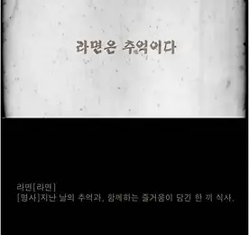 [대학생서포터즈] '라면의 추억' UCC [대학생서포터즈] '라면의 추억' UCC 라면이란... 바로 '추억'입니다.라면의 사전적 정의는 '국수를 증기로 익히고 기름에 튀겨서 말린 즉석식품'입니다.하지만 우리에게 라면이 정말 그렇게 딱딱한 느낌인가요?아니죠~ 바로 추억과 함께하는 즐거움이 담긴 한 끼 식사입니다. 혼자서 라면을 끓여먹던 그 순간!!'아.......... 이 맛이 아닌데'라고 생각하지 않나요? 왜 그럴까요? scene #1. 시간을 달리는 라면 누구나 경험했던 시험기간의 라면!"아아~ 배고파~"그럼 제일 먼저 생각나는 그것은??네~ 바로 '라면'입니다. "우리 진짜 빨리 먹고 오자."하지만 어김없이 라면을 먹다보면 시간이 후딱 지나가버립니다.정말 시간을 달리는 라면입니다. scene #2. 군대는 뽀글이다 군대를 다녀온 예비역 남.. 더보기 이전 1 ··· 910 911 912 913 914 915 916 ··· 1849 다음