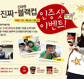 진짜진짜 & 신라면블랙컵 '인증샷' 이벤트!! '진짜진짜 & 신라면블랙컵' 인증샷 이벤트!"이용대, 양준혁, 심권호"님의 사진이 보이시나요? 사진처럼 '진짜진짜 & 신라면블랙컵'과 함께한 인증샷을 남겨주시면 8월 한달 간 총 40분을 선정해 친구분들과 함께 즐길 수 있는 선물을 보내드립니다. 이벤트 기간 : 08.16 ~ 09.16당첨자 발표 : 09.21 '진짜진짜 & 신라면블랙컵' 이벤트 바로가기 더보기 이전 1 ··· 985 986 987 988 989 990 991 ··· 1849 다음
